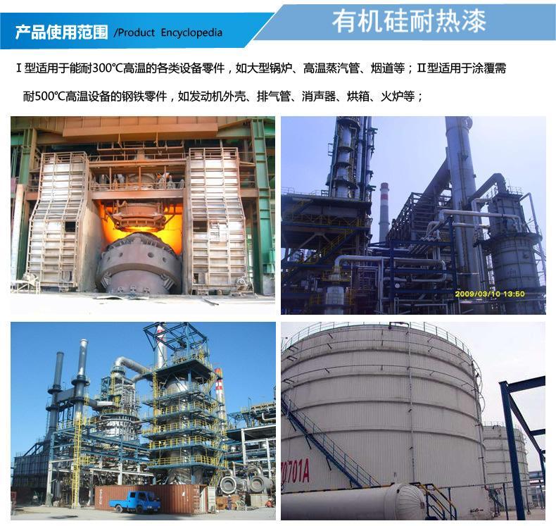 金洋200℃各色有机硅耐热漆 有机硅耐热树脂 耐高温颜 填充料 助剂及溶剂组成 具有耐高温300度各类设备 大型锅炉 蒸气管 烟道 排气管 火炉等