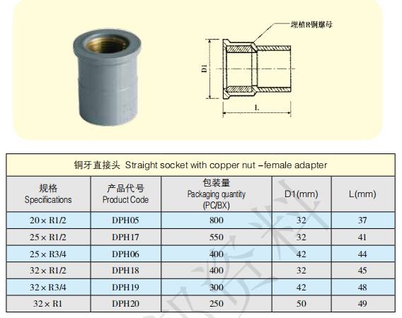 UPVC给水铜牙直接 重庆现货供应 上水管铜牙内丝直接 铜牙接头