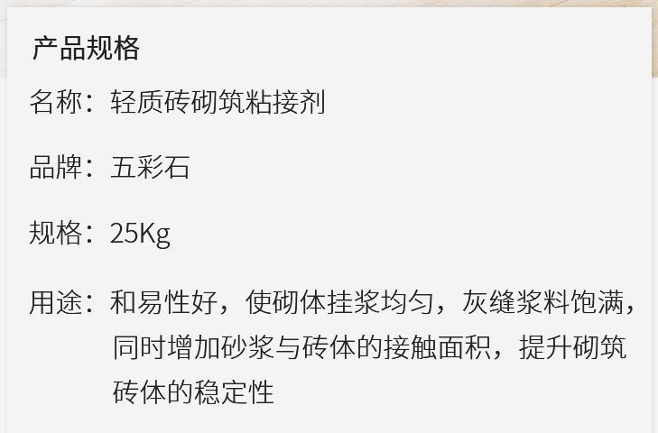 品牌 : | 五彩石 | 类别 : | 抹面砂浆 |