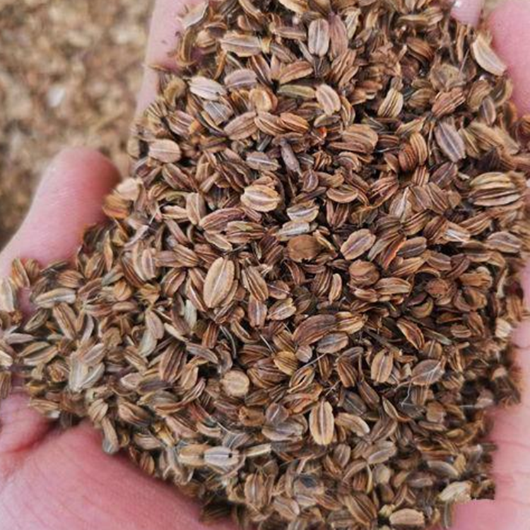 分果背面稍隆起,具5肋线,中间的3条较平,两侧的2条较宽,腹面平凹,横切面上可见肋线间各具油管1条,腹面具油管2条。含种子1枚。种子横切面扁,胚乳丰富,灰白色,含油分,胚细小,白色,埋生于种仁基部。千粒重约4克左右。新防风籽防风籽报价防风籽出芽快免费育苗技术