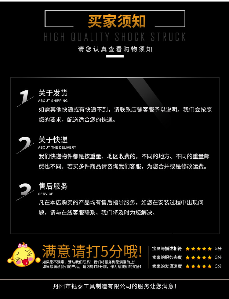 丹阳市钰泰工具制造有限公司 智能客服智能客服在线解答,若涉及资金打款事宜,务必与厂家进行电话确认。