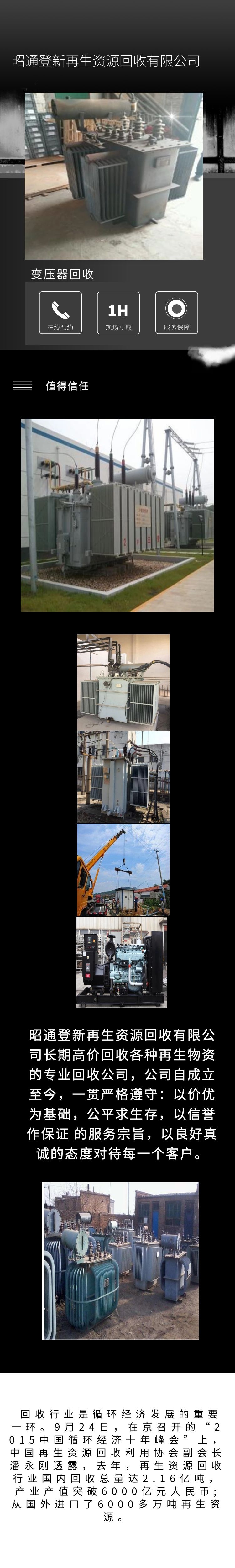昭通登新再生资源回收有限公司长期高价回收各种再生物资的专业回收公司,公司自成立至今,一贯严格遵守:以价优为基础,公平求生存,以信誉作保证 的服务宗旨,以良好真诚的态度对待每一个客户。