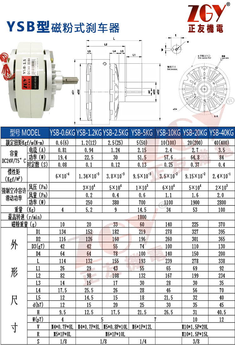 YSB-5kg单轴磁粉制动器分切印刷涂布复合机张力控制动放卷机刹车