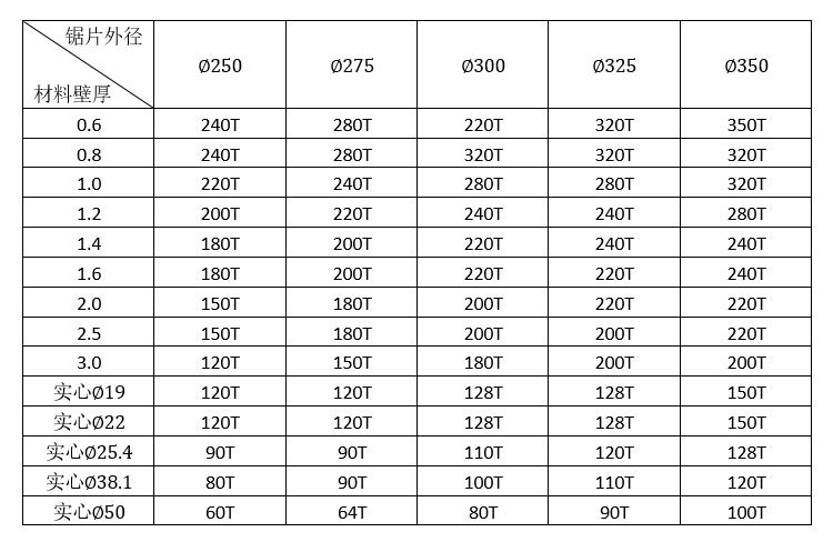 六.锯片齿轮参照表
