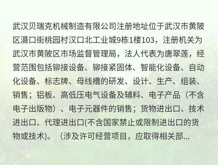 商铺名称:武汉贝瑞克机械制造有限公司
