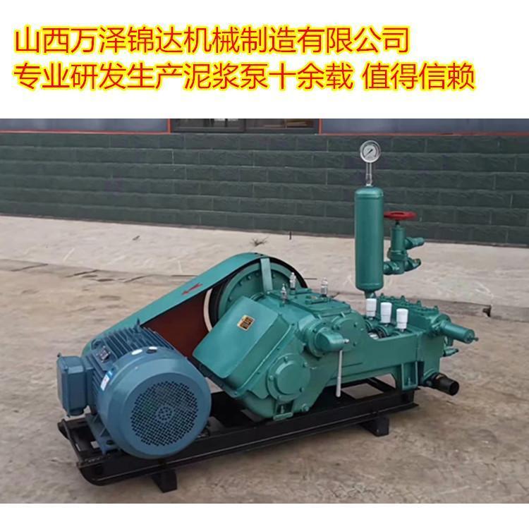 ???BW系列泥浆泵为卧式三缸往复单作用活塞泵。该泵类主要用于地质钻探、地质工程施工配套及地基处理低、中压注浆泵,或者2000米以内大口径钻机配套使用,亦可作为冲击回转钻进配套用泵。其使用范围包括:石油、化工、煤炭、造纸、制药、食品、高岭土、水煤浆、电解电镀、污水处理等各行各业。用来作为输送泵、压力泵和定量泵。