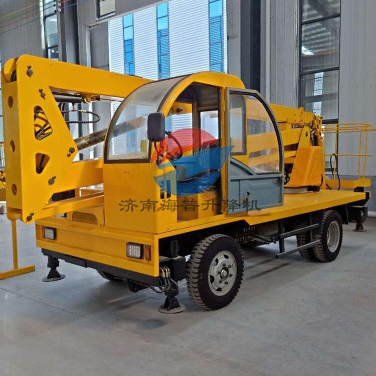 车载折臂式升降机:把曲臂式升降机安装在汽车上,利用汽车动力驱动升降。适合远路程的野外高空作业。