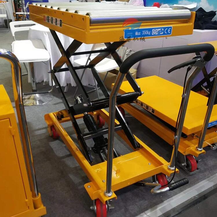 脚踏平台搬运车采用脚踏液压泵驱动平台上升采用脚踏液压泵驱动平台上升,载重量从300公斤至1000公斤升高有900毫米至1700毫米各规格产品。适用于各行业货物升高移动。它使繁重的搬运工作变得轻松,快捷。