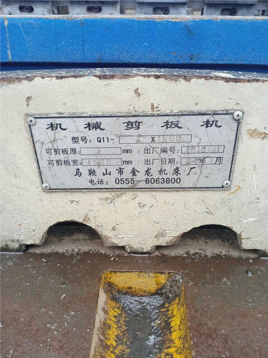 二手马鞍山机械剪板机。型号QC11 3×1500,位置肥东裕溪路华东建材城钢材城E区108栋6-8号安徽长江机床合肥办事处长期供应剪板,折弯机,冲床,刀模具回收二手设备,整厂设备打包。