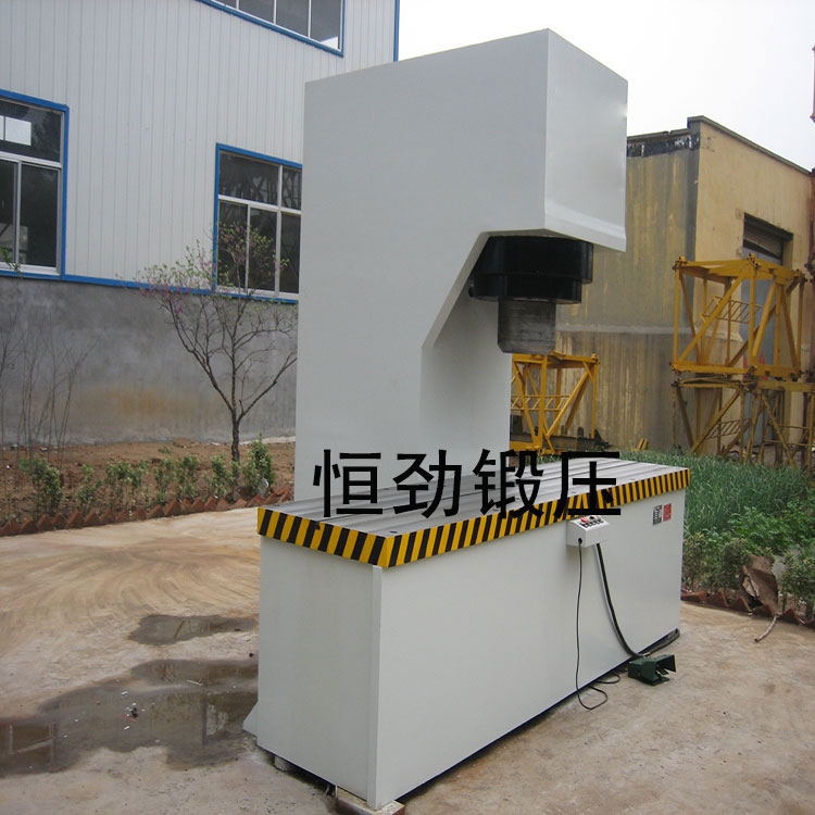 机身由两块主板切割成型后焊接成三面开式主体,顶部装有油缸,下部安装工作台。后面是承受压力的力臂主体。