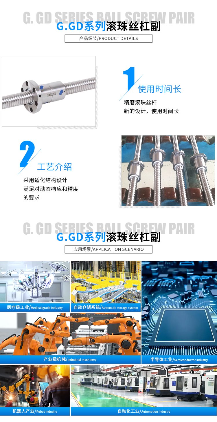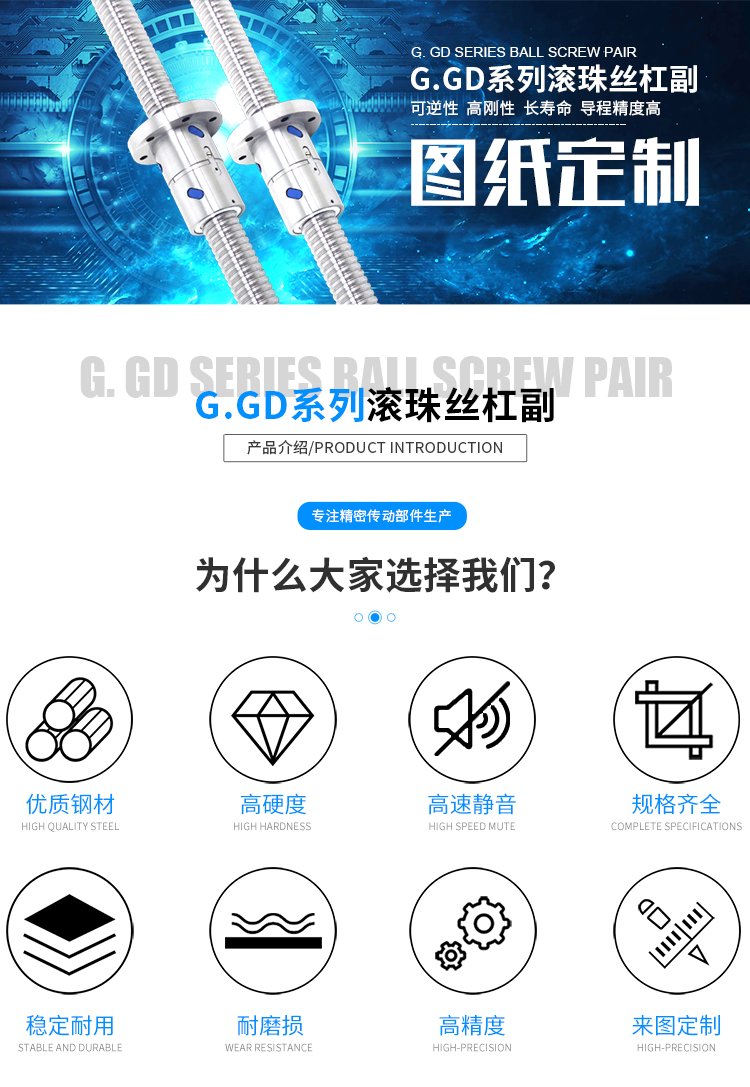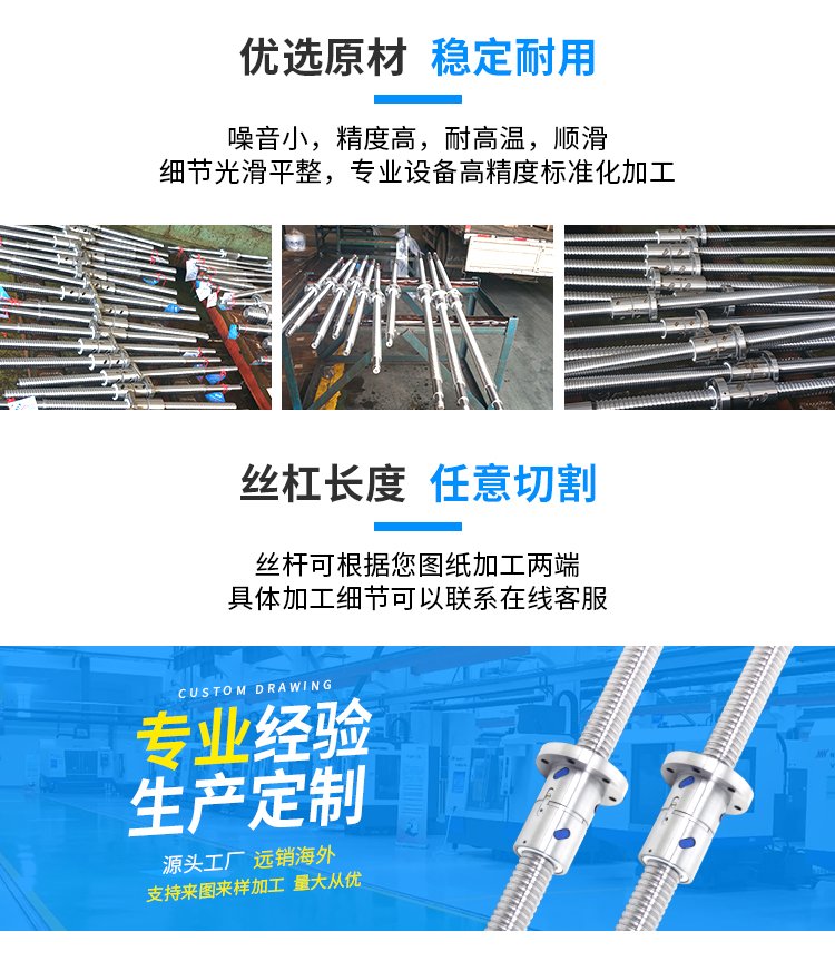 螺纹式轴承钢往复丝杠高精度左旋机床配件滚珠丝杆选型