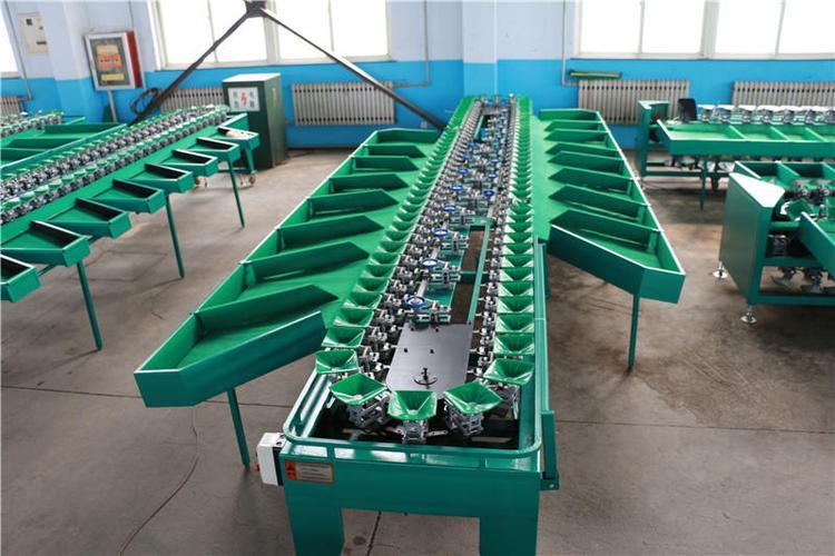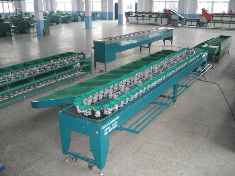 8、选果机先进的预排列技术。只需人工将水果倒在输送带上或上料斗,机械自动将水果进行排队,一个一个落入果盘进行称重分选。
