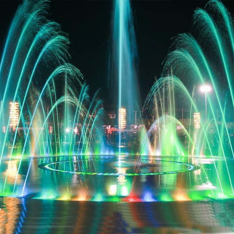 二是完全依靠喷泉设备人工造景。这类水景在建筑领域广泛应用,发展速度很快,种类繁多,有音乐喷泉、程控喷泉、摆动喷泉、跑动喷泉、光亮喷泉、游乐趣味喷泉如呐喊喷泉、超高喷泉、激光水幕电影等。"