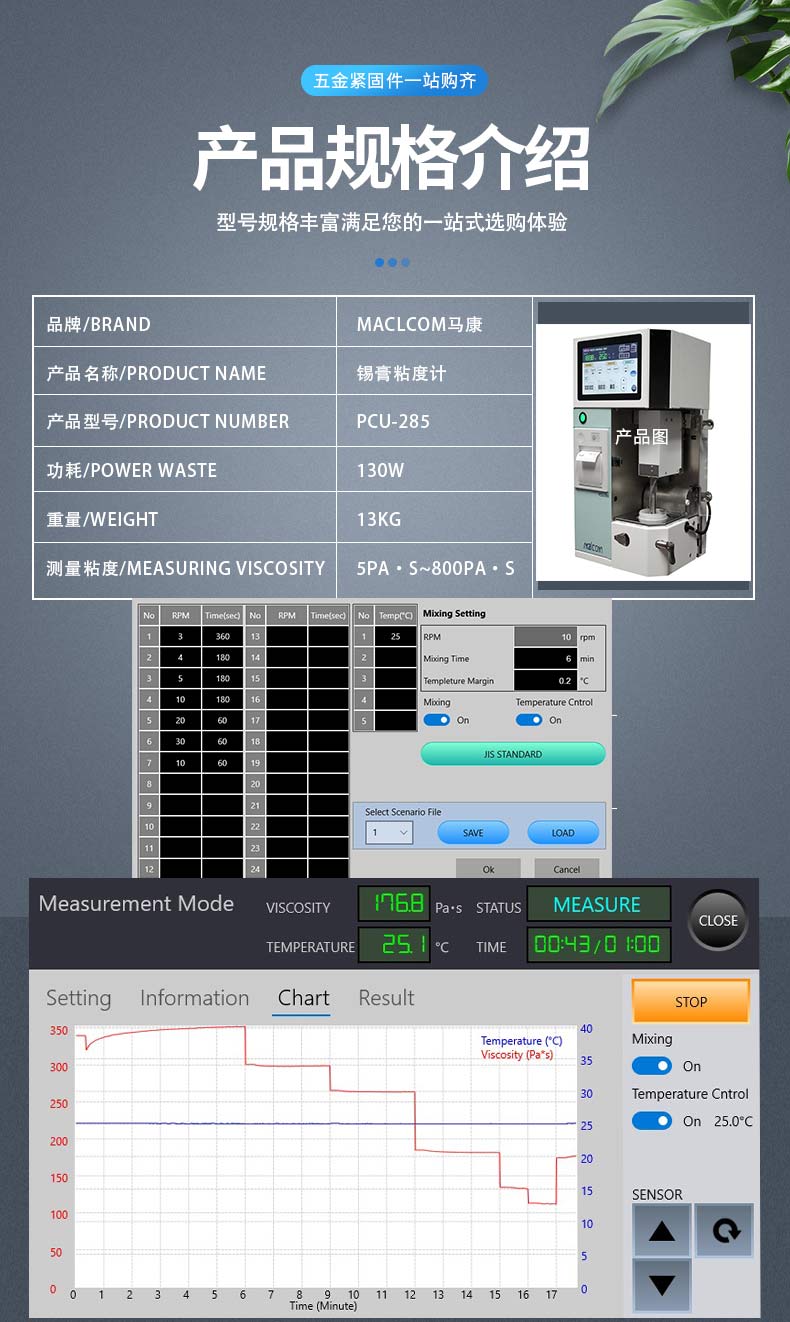 内置打印机 | 温度、粘度、滴落速度、转速、日期 | ||