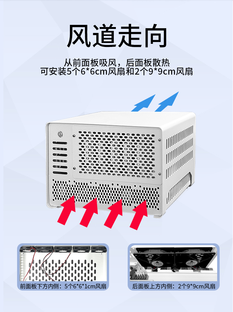 NAS机箱迷你电脑mini黑色小型家用硬盘10盘位服务器ITX全高PCIE