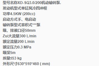 XD-SQ3.0/200输转泵大流量泡沫救援泵四冲程单缸风冷消防泵诺达 是否进口 | 否 | ||