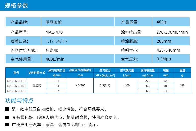 功能用途 | 皮革、脱模剂、机械手、油漆喷涂 | ||