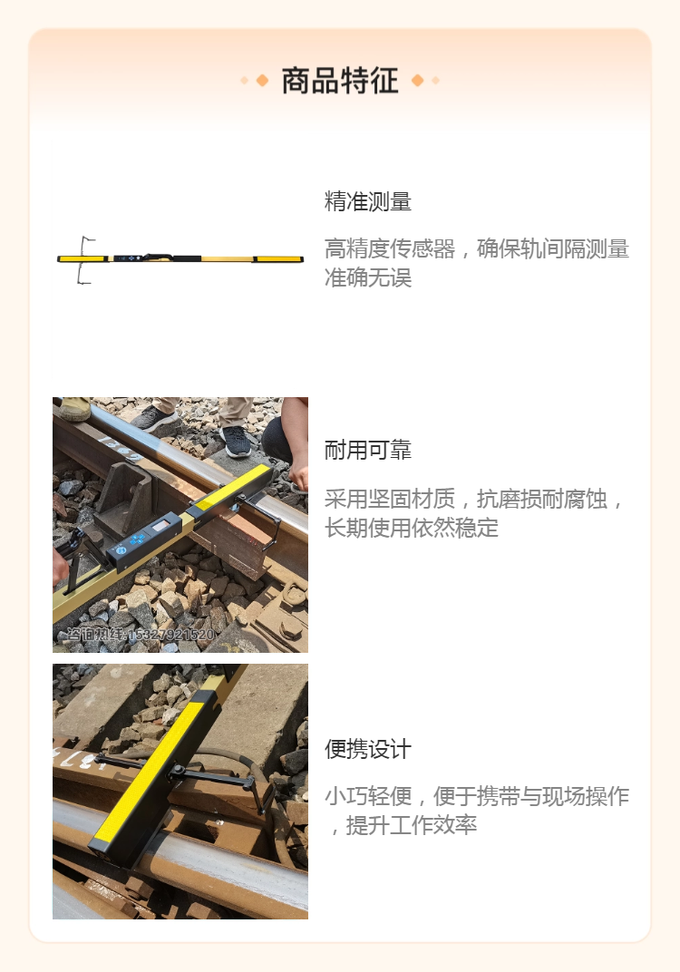 用途范围 | 铁路线路轨距、超高、查照间隔、护背距离的测量 | |||