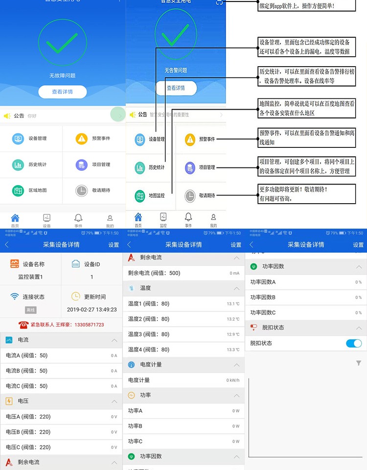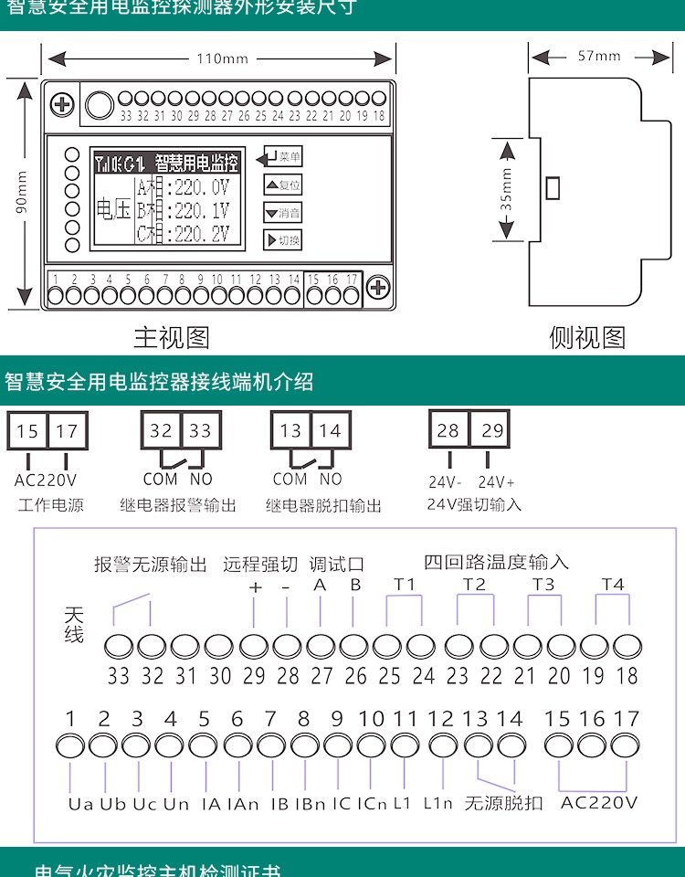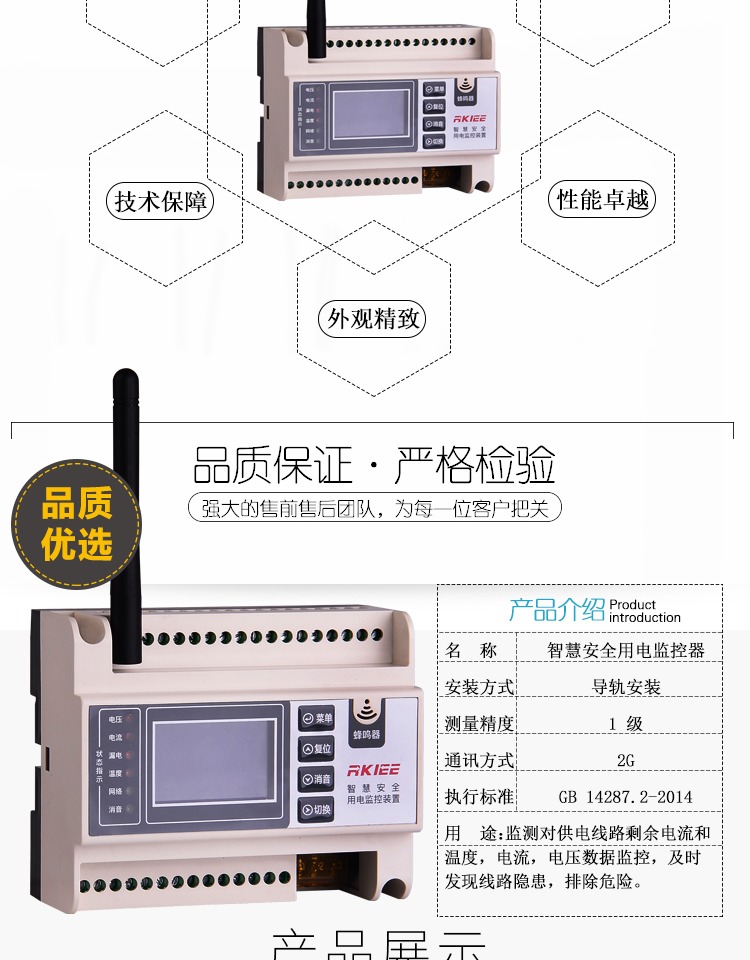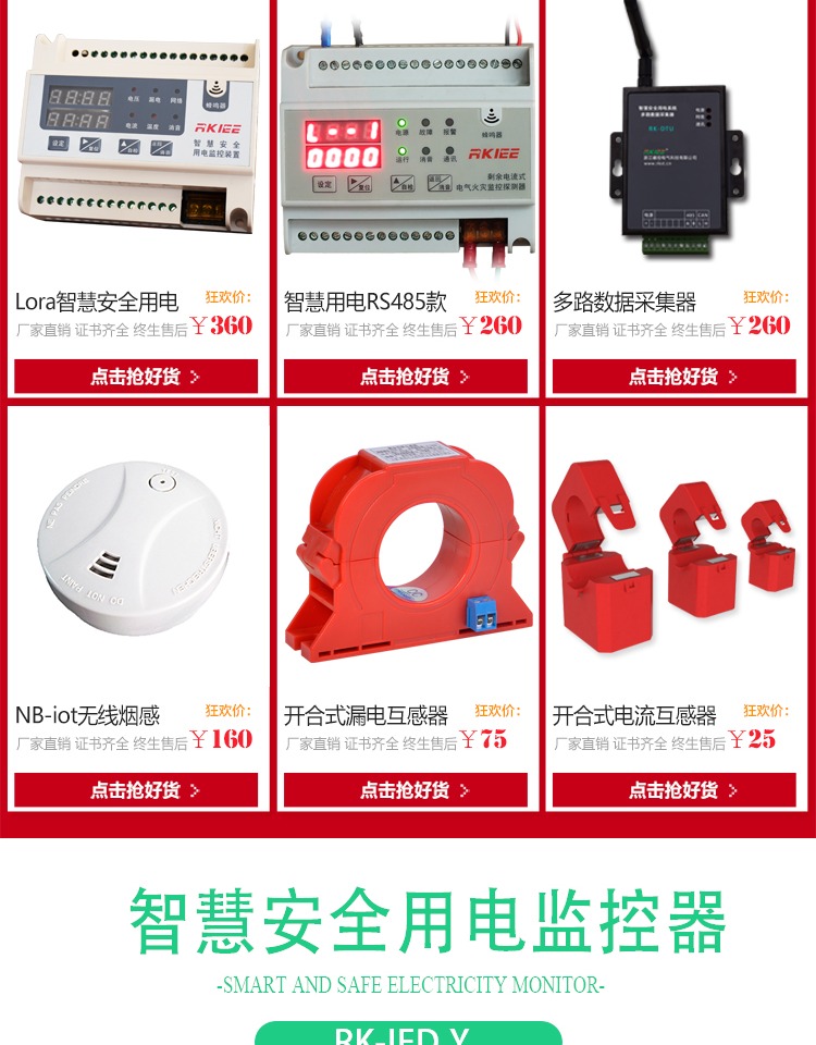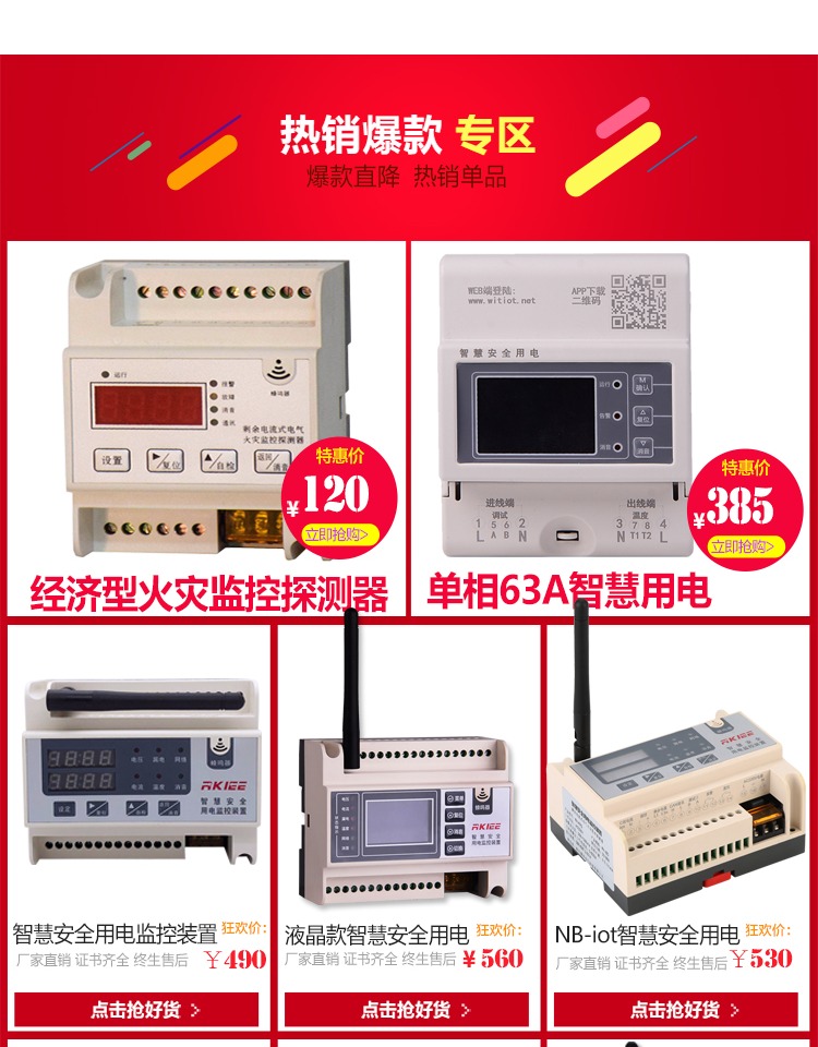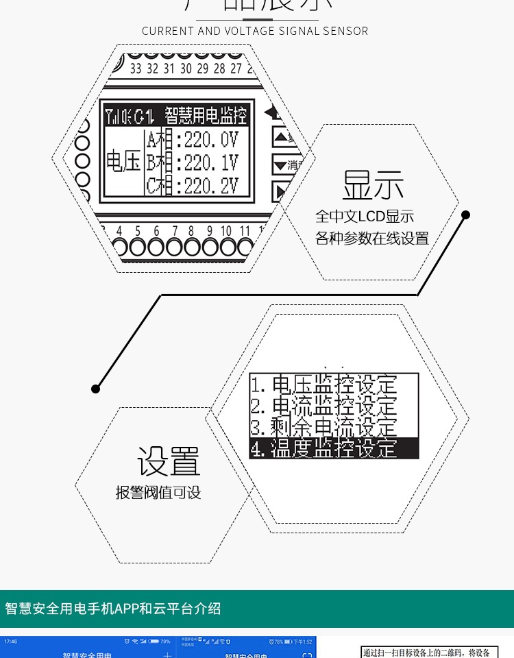 睿控液晶款智慧安全用电监控探测器智慧消防终端硬件无线电气火灾