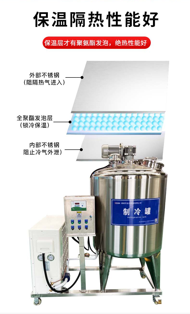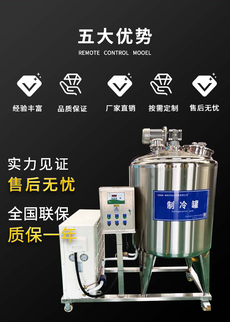 根据机组与罐体的连接方式,产品分为连体式和分体式;根据冷却方式,产品分为直冷式和间冷式。根据罐体形状,又可分为圆柱形立式、半圆形开启式、椭圆形封闭式。较常用的是椭圆形封闭式的牛奶冷却罐,也可根据用户要求设计和制造。