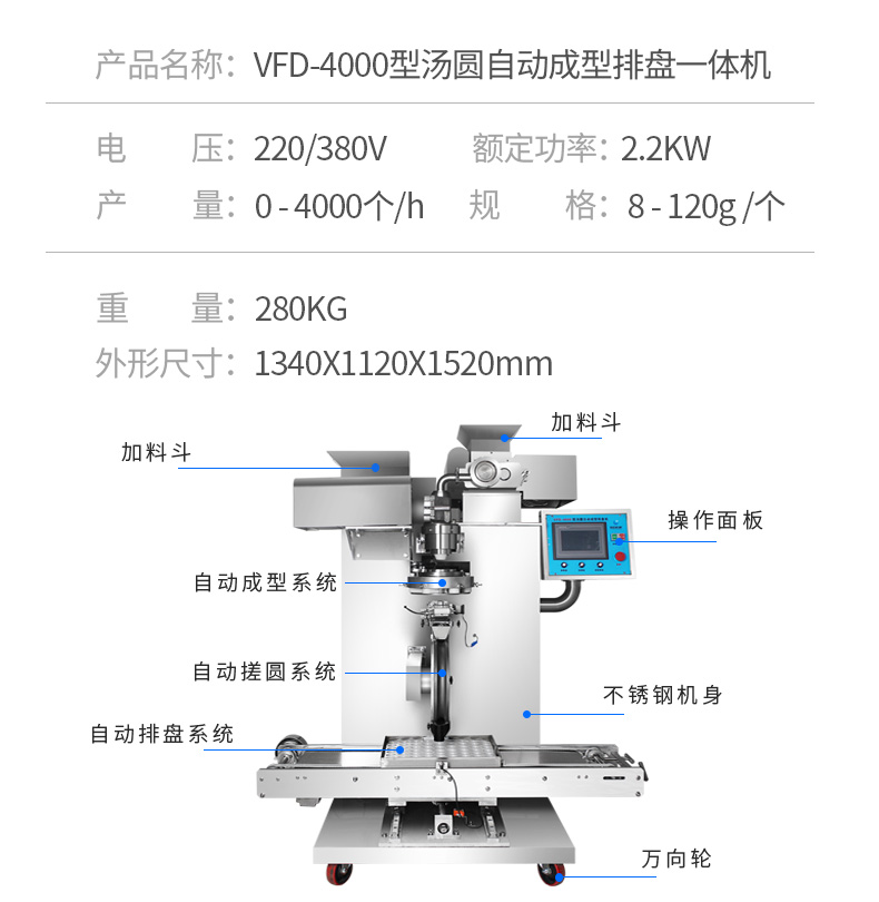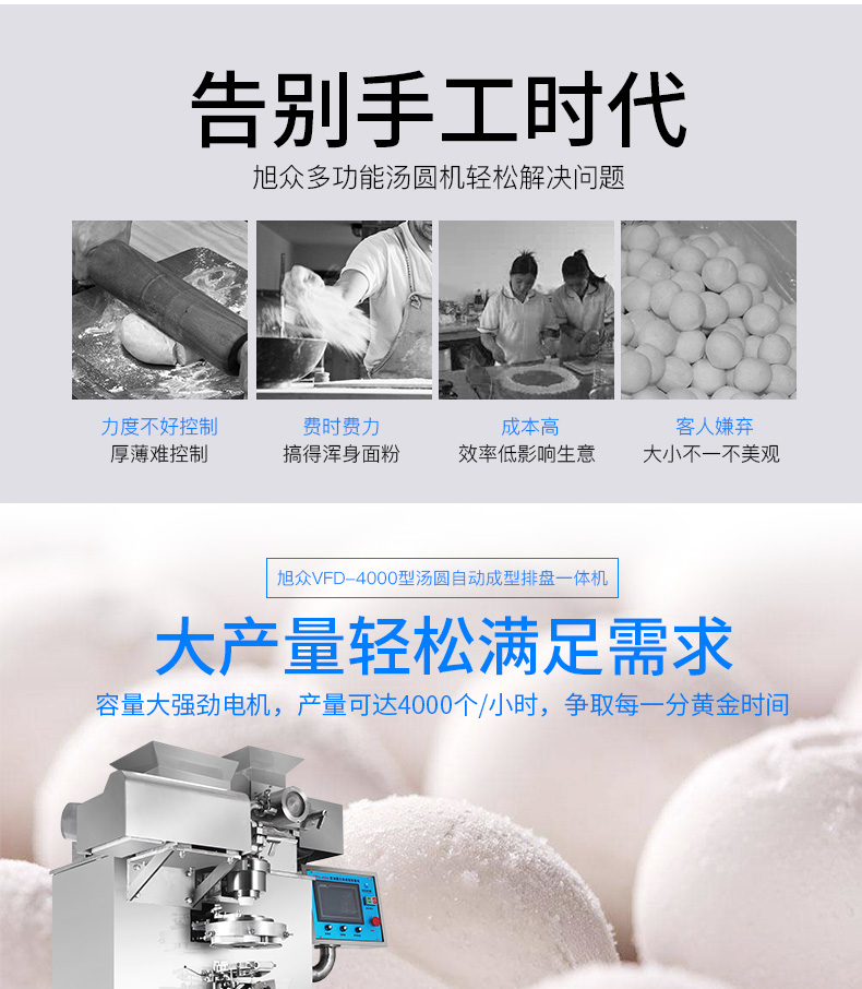 旭众全自动汤圆机厂家 VFD-4000型 0-5000个/h 是否支持加工定制 | 是 | ||