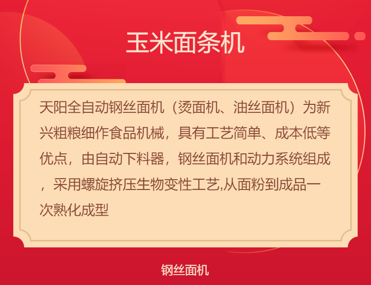 可生产产品类型 | 钢丝面冷面烫面饸饹 | ||