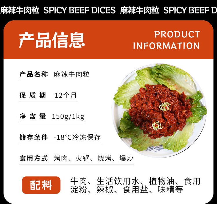 • 规格:麻辣牛肉粒1kg