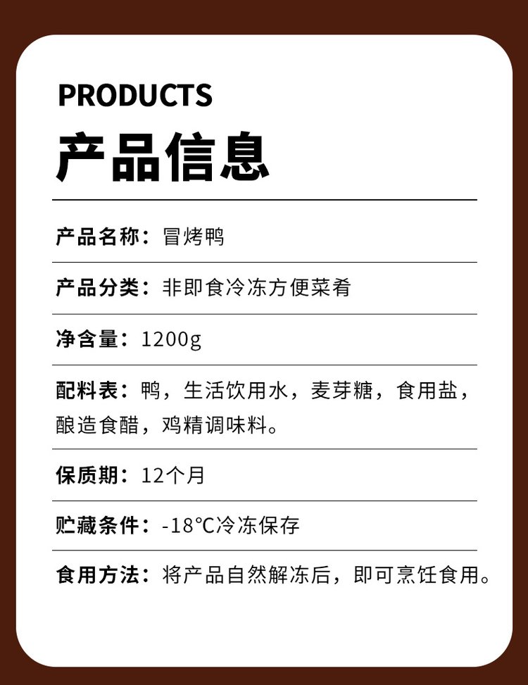烹饪建议 | 无需解冻,直接加热或烤制即可食用 | ||