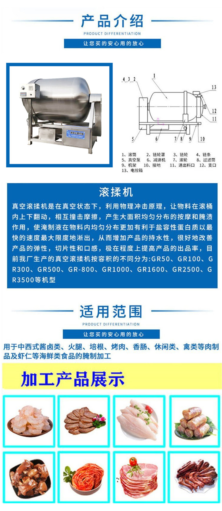 正康多功能鸡肉嫩化真空滚揉机肉制品腌制设备肉类入味搅拌腌制机