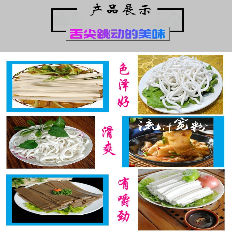 流水线型由土豆粉机、煮粉槽、冷却槽,风冷式数控切段机组成,TFH-150型,主机动力4.5KW,煮粉加热器24KW,产量300-400公斤/小时,价格14800元/套。