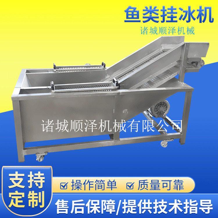 本产品是顺泽机械公司研发人员经过长时间研究调查而研发的一款新产品,产品出力大,用电少,产量高,大大降低了劳动力成本,适合多种产品挂冰,*效挂冰20吨/天,1.5-3吨/小时,一年四季开工,效果好,快,省,诚邀您带料上门试机。设备采用优质SUS304不锈钢制作,不锈钢传送带,保证水温在0度左右,以确保在0度左右,以确保冰衣效果。