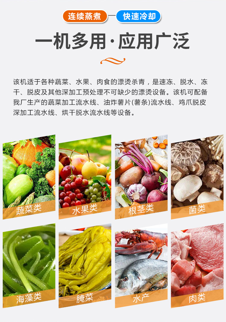 蒸汽加热毛肚漂烫机 牛百叶蒸煮机 连续式鸡爪预煮机 质保一年