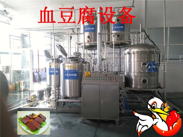 血豆腐生产线所需设备:冷藏罐、过滤器、脱气罐、包装机、杀菌锅;其中冷藏温度是4度,冷藏3-15小时;过滤器分为单体式、双联式、多联式,目的是将凝结血块、杂志血豆腐生产线等过滤出来;脱气罐的温度是40度,真空度是-0.08Mpa~-0.09Mpa,时间是5分钟;包装机选择拉伸膜包装机,也可选择盒式包装机,分为连续式和单盒。