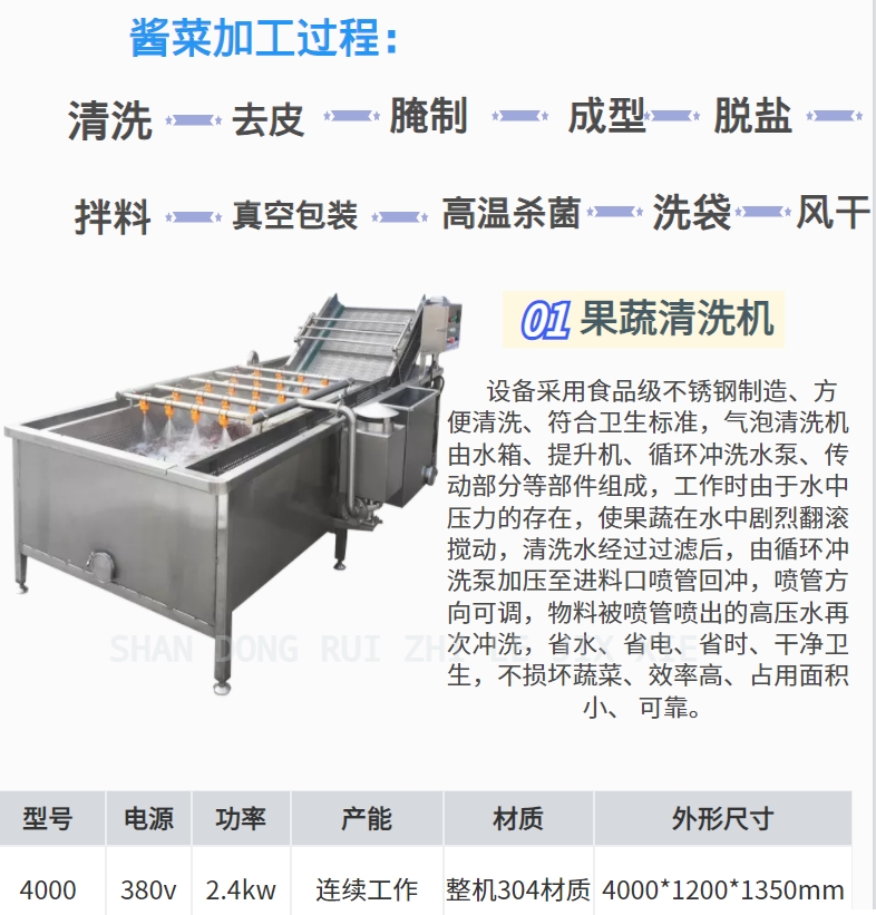 辣制白菜、腌制黄瓜、腌制萝卜等可口小菜可谓是下饭菜,四川。重庆那边加工腌制咸菜的比较多,要办个酱菜加工厂不但要知道产品的工艺、还要知道工艺流程使用设备,我公司就是从事榨菜、泡菜、酱盐咸菜成套流水线 梅干菜加工设备厂家酱菜加工设备的研发、设计、制造的厂家,经过十多年的不懈努力,从原始作坊到现代工业化加工,酱腌菜生产线厂家,生产设备从酱腌池里榨菜的起池、提升、清洗、切丝、分级、脱盐、脱水、自动拌料、自动称重装袋真空封口、杀菌、烘干等整条生产线。