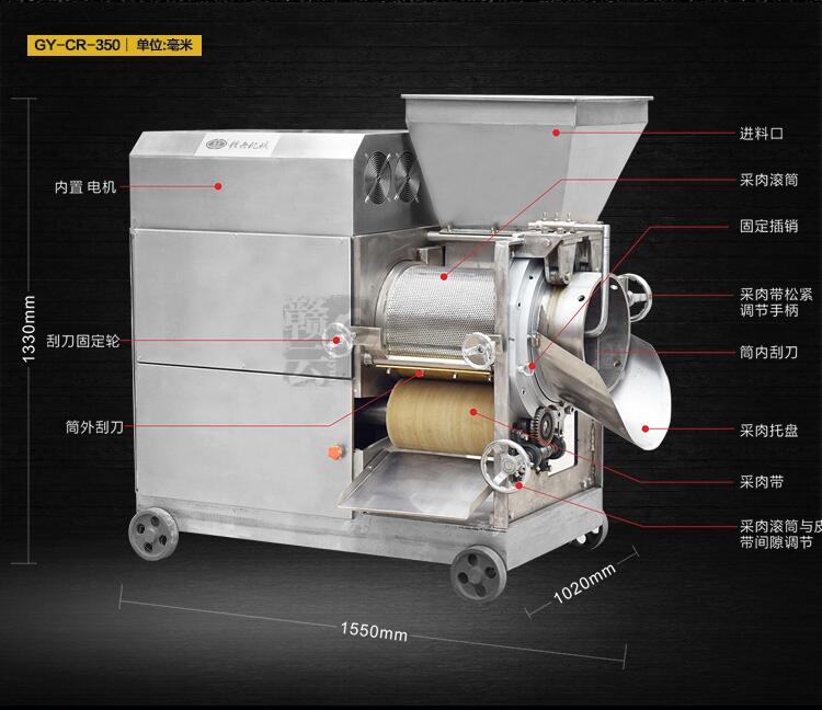 鱼肉采肉机、鱼肉疏松分离机装有采肉桶和鱼肉去刺机压榨肉用的橡胶带,利用滚动的采肉桶和传动的橡胶带的相互压榨运动将鱼挤入采肉桶内,而把鱼皮、鱼骨留在采肉桶外,鱼肉去皮机由刮刀把它送出机外. 鱼肉采肉机适用于海鱼、淡水鱼各种鱼类.大鱼分割成段,小鱼直接采肉.经采下的肉可加工成鱼肉丸、鱼肠、火腿等产品,鱼肉去刺机加工出的水产品推向市场,深受消费者的欢迎,同时,低成本的杂鱼鱼肉去刺机加工出的产品会给企业带来丰富的经济效益.鱼肉去骨机、鱼肉疏松分离机分离出来的鱼肉可用于生产鱼丸,鱼豆腐等。