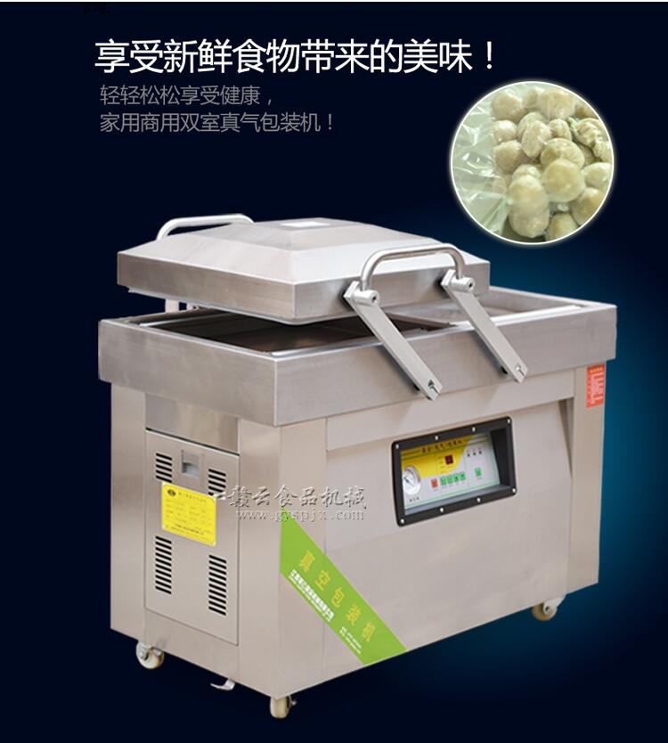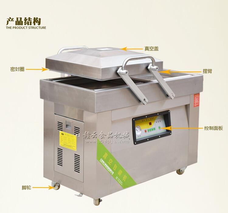 3、压下真空盖,面板上的抽气指示灯亮,真空泵开始抽气,机盖即被自动吸引,抽真空时间可根据包装要求调节适当时间。
