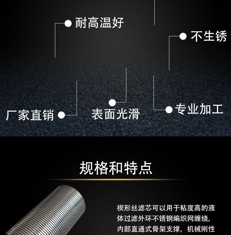 名称 | 纯圆楔形丝绕丝筛管滤芯 | ||