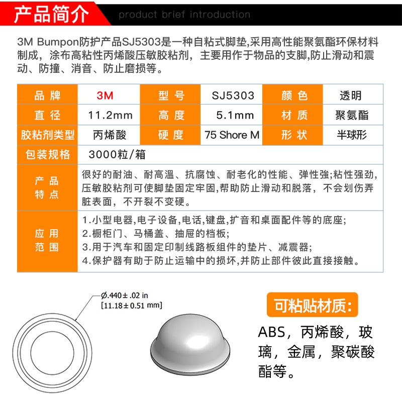 3M正品SJ5303原装SJ5302黑色消音SJ5012防撞胶粒SJ5008自粘防滑脚垫