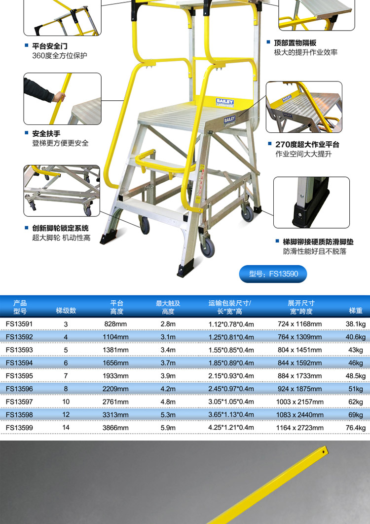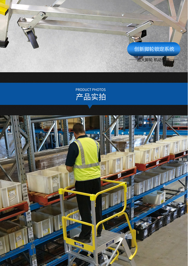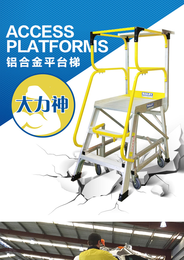 稳耐梯子铝合金人字梯1.7米平台梯三步超市理货梯需组装FS13591