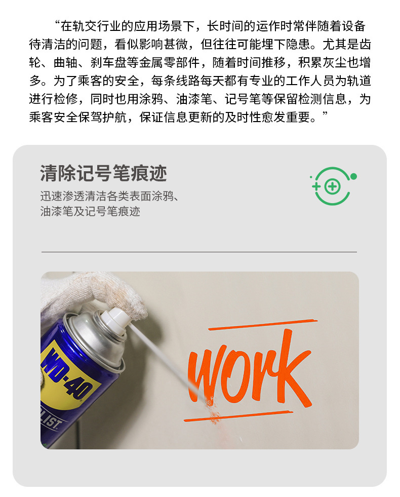 WD-40加强型零部件清洗剂交通轨道行业通用清洁去除油漆笔及记号