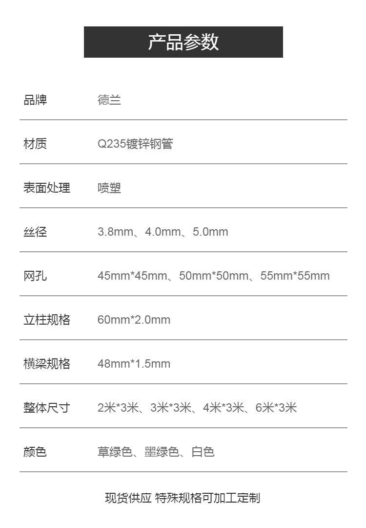 适用范围 | 篮球场体育场足球场隔离防护 | ||