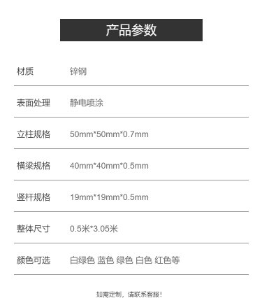 立柱规格 | 50mm*50mm*0.7mm | ||
