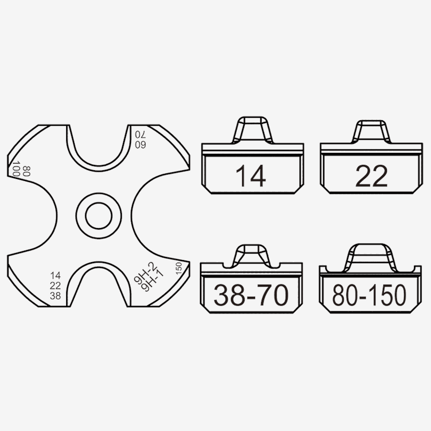 ? 压模14, 22, 38~70, 80 ~ 150 mm2
