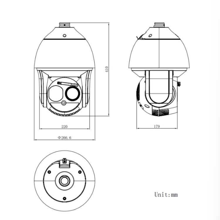 HM-TD4137T-50/W 海康微影测温型智能烟火检测热成像双光谱网络智能球形摄像机 外形尺寸: