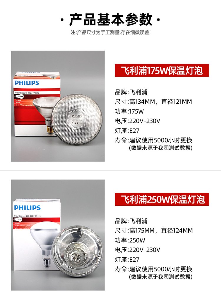 高校实验室加热烘干用飞利浦250W黄光红外灯泡配国产可调光灯架加粗电线加大灯罩
