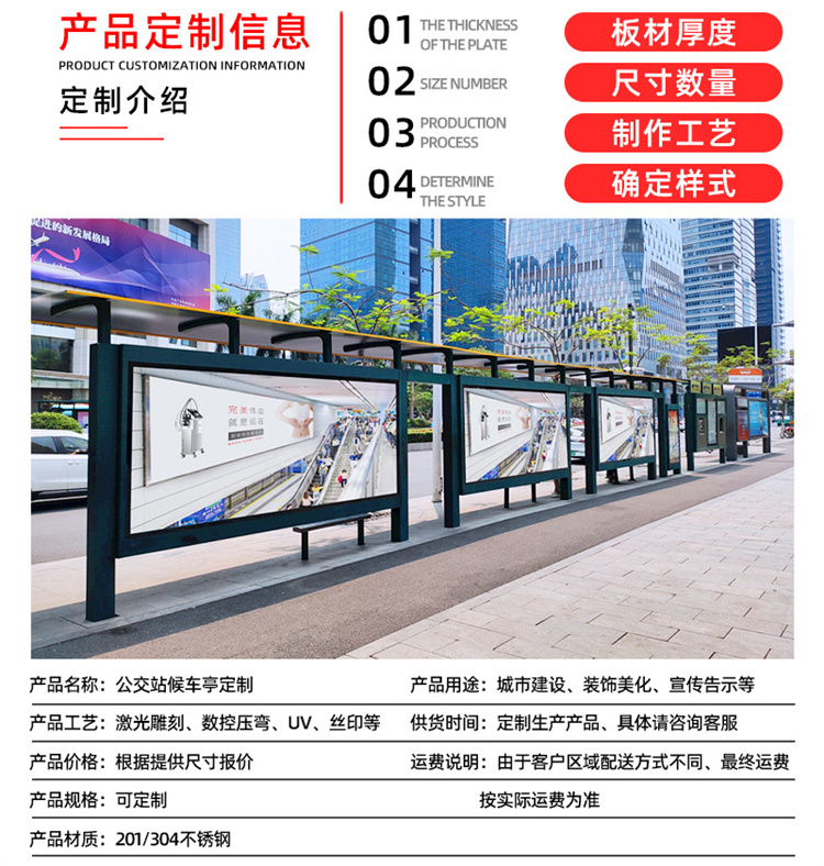 恒宇简约现代候车亭乡镇不锈钢公交站台防雨耐晒耐腐蚀全国接单