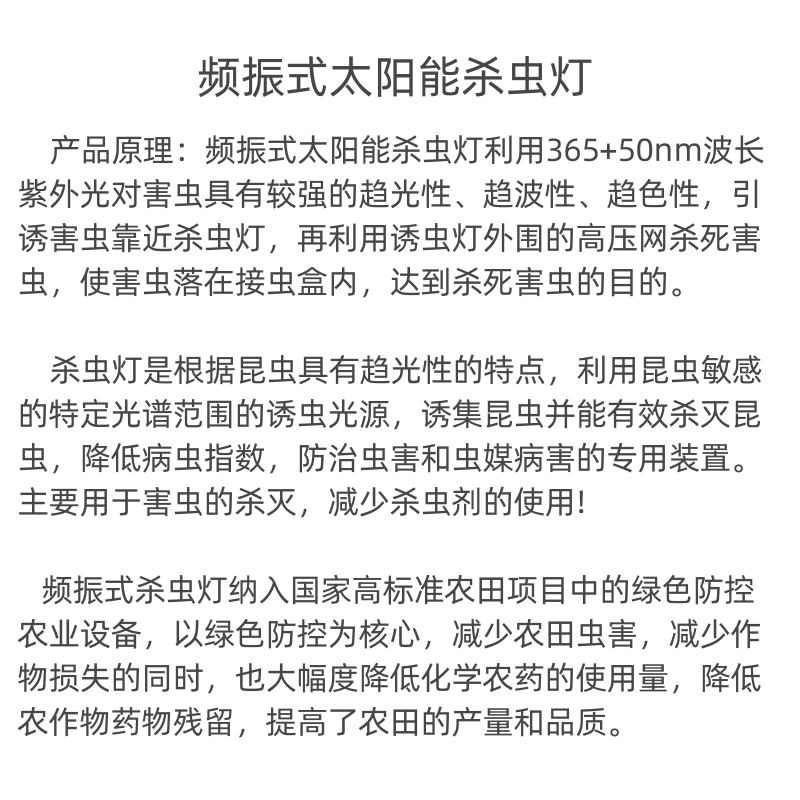 产品名称 | 频振式太阳能杀虫灯 | ||