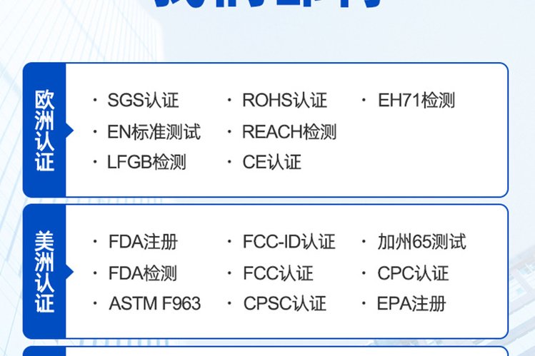 检测类型 | FDA认证(包括食品、激光产品、化妆品、医疗产品等) | ||