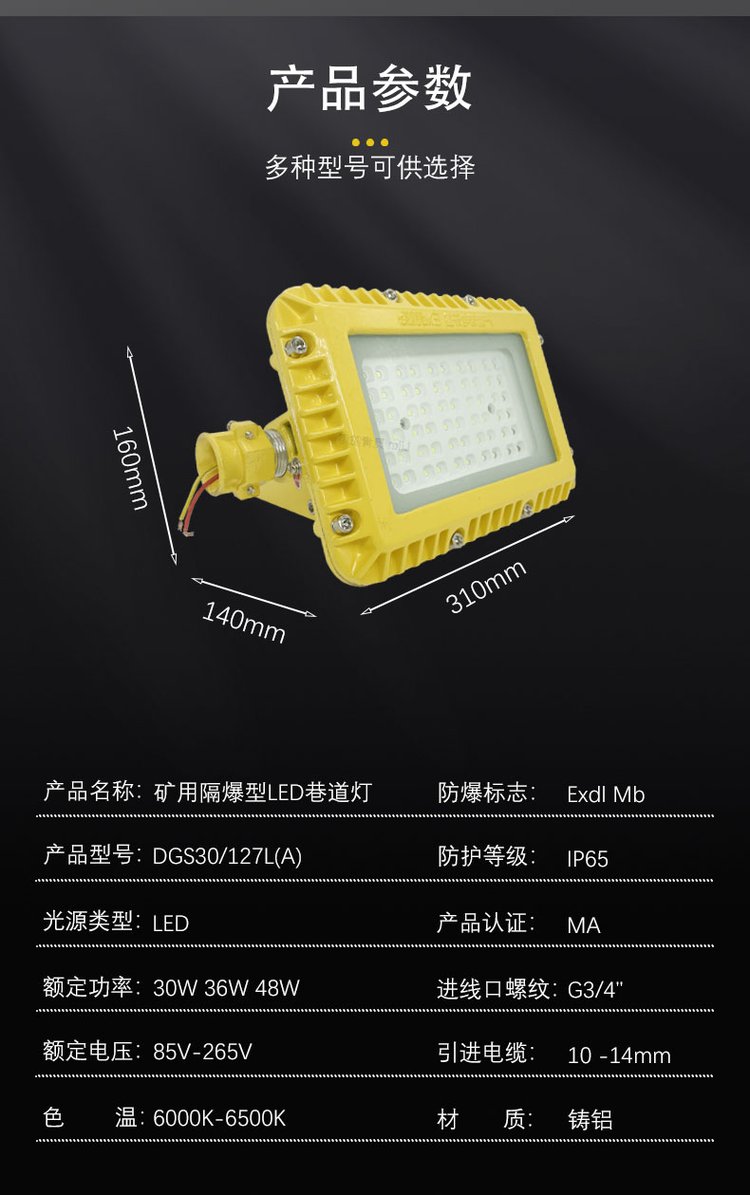矿用隔爆型LED巷道灯DGS30/127(A) 井下用防爆led照明灯 方形矿灯 品牌 | 灵肯防爆 | ||