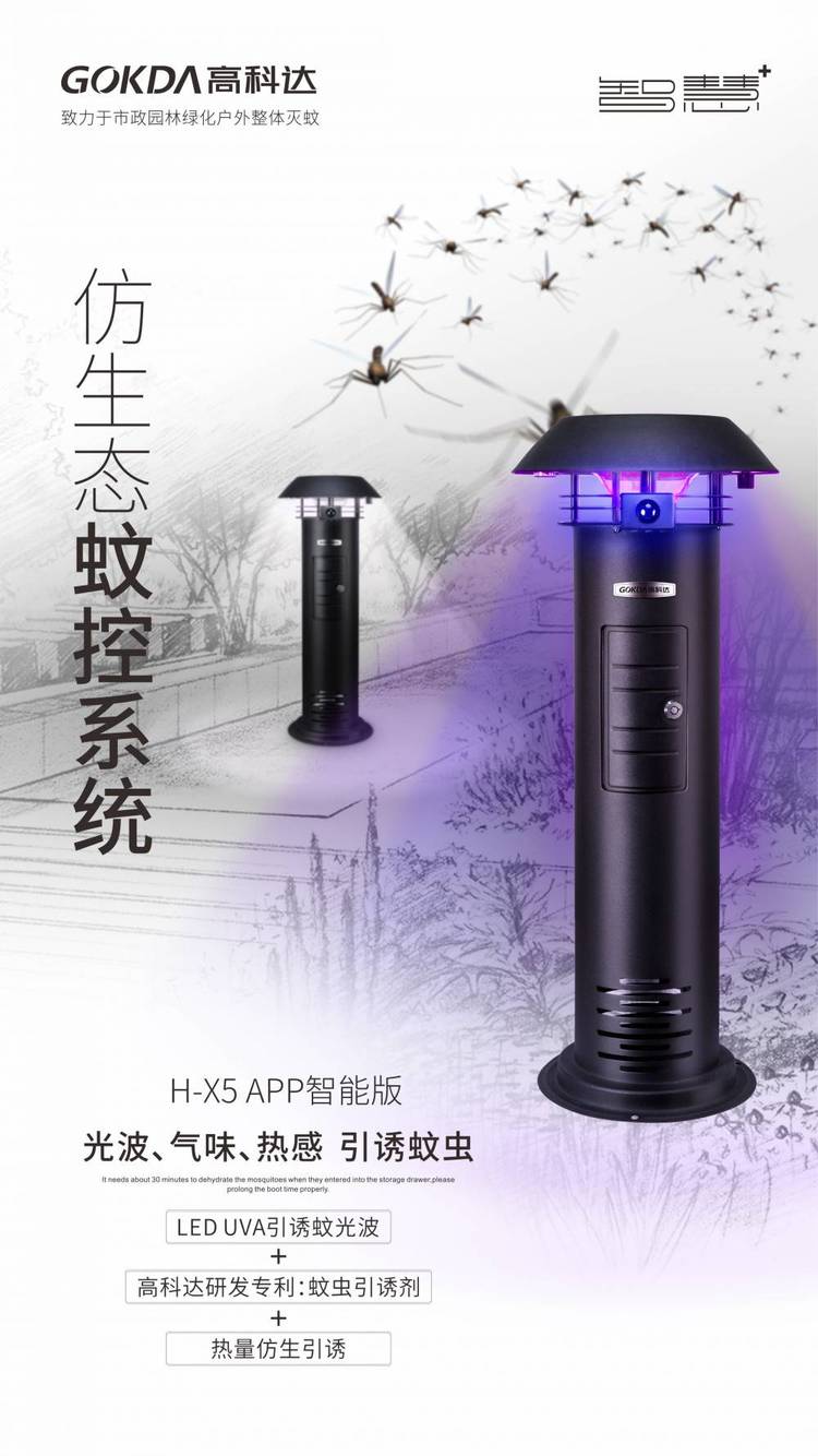 高科达仿生态蚊控系统运用生物诱蚊技术和物理灭蚊设备,采用定制进口LED UV芯片所散发的特定诱蚊光波 蚊虫信息素气味 温度模拟引诱蚊虫靠近,高速旋转的涡流风机将蚊虫吸入储蚊网兜风干脱水而死。